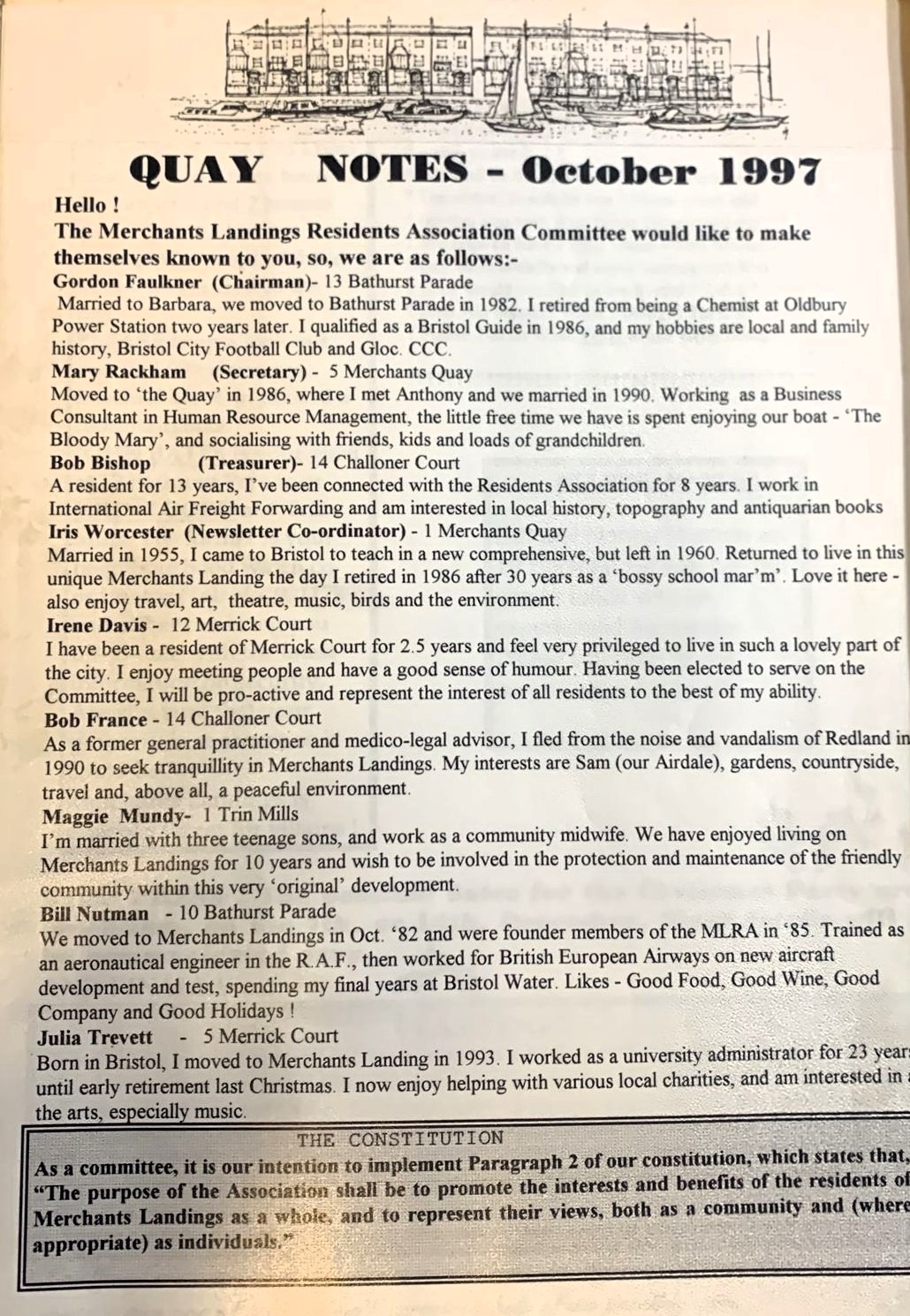 Merchants Landing Residents Association published a newsletter called Quay Notes.