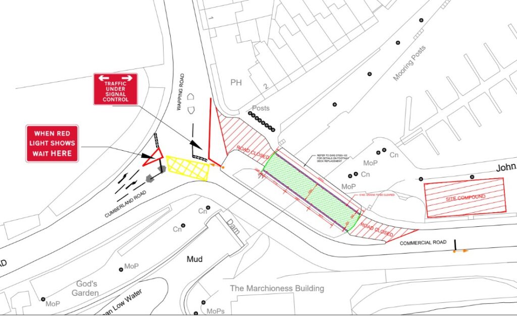 Throughout the closure, road traffic and pedestrians will be directed across the fixed bridge that runs alongside the swing bridge. Traffic will be controlled by temporary traffic signals. The Council website states that ‘these signals will be responsive to traffic build-ups and will be manually operated at peak times.’ We can expect major disruption for two years or more.