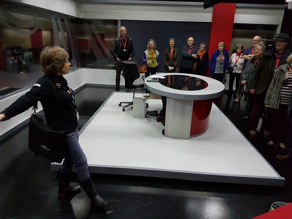 We later went on the roof to see where BBC weatherman Ian Ferguson delivers the live Points West evening forecast, the Radio Bristol studios (where Geoff Twentyman was actually broadcasting) and the Points West television studio. At the end of the tour Landing residents recorded their own news bulletin, using technologies similar to those used by the professionals.