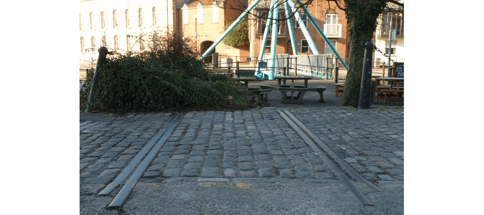 When the line closed in 1964 this engine was removed to the Industrial Museum. The stationary engine had a secondary function which was to assist manoeuvring the large boats using the basin both through the lock past the open bascule bridge and alongside the working quays. This was done by ropes threaded round the wheels that are still located on the quay edge by Lower Guinea Street.