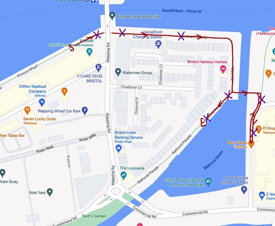 It’s a walkabout show, performed around the Harbourside, starting at the M Shed, and the performers will be using the alleyways around Merchants Landing for access to the performance area.